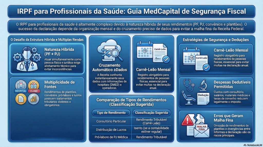 O IRPF para Profissionais da Saúde é um dos pontos mais sensíveis da organização financeira de médicos, dentistas e demais profissionais da área. A complexidade não está apenas no preenchimento da declaração, mas na forma como os rendimentos são organizados ao longo do ano.
